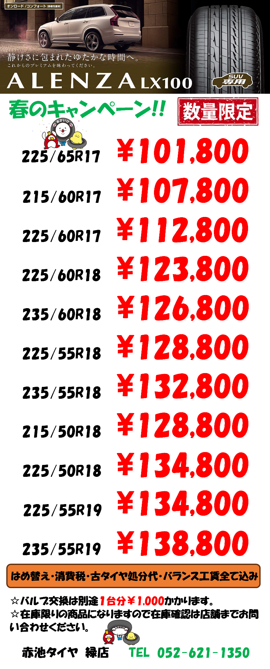 225/50R18ー118,800円* CHーR他