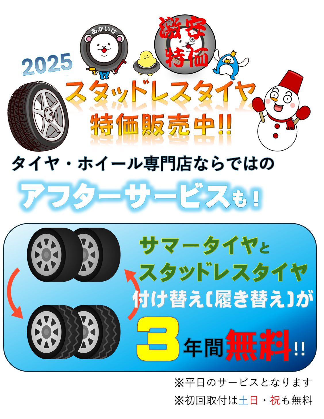 タイヤの交換のケースが多いため、新しく交換・・・